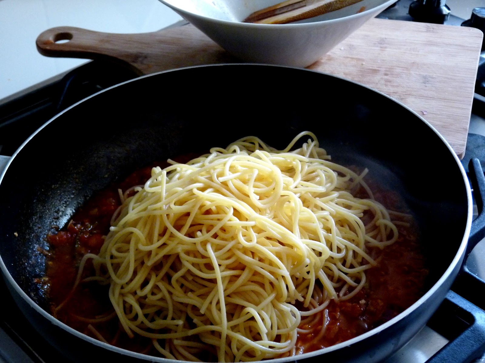 - Add sauce on top of a plate of pasta. I like to add a cup or two of chopped romaine lettuce to my pasta.