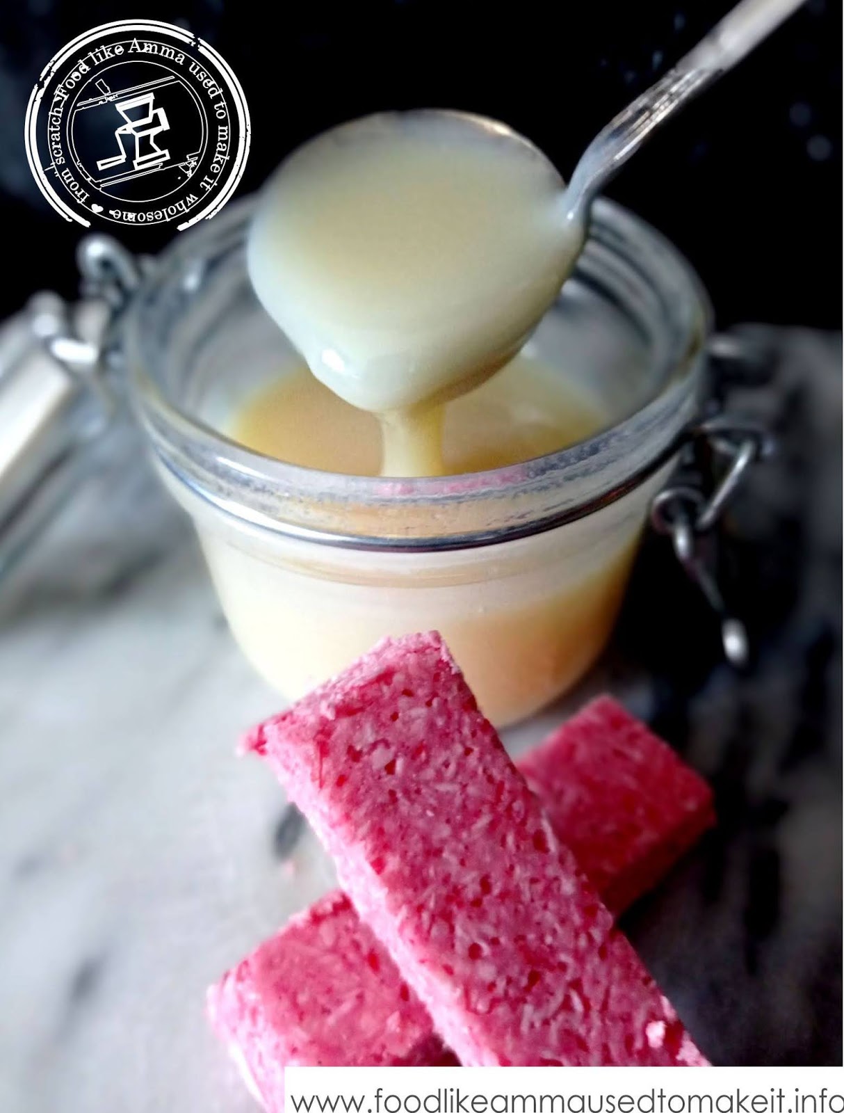 There are two methods for making coconut ice. The first is to use condensed milk, this may be the simplest method of making coconut ice. I have tried several coconut ice recipes-the one which worked best is this one, adapted from Scottish Recipes. I use equal amounts of icing sugar and coconut combined with a can of condensed milk an equivalent amount of my homemade condensed milk.