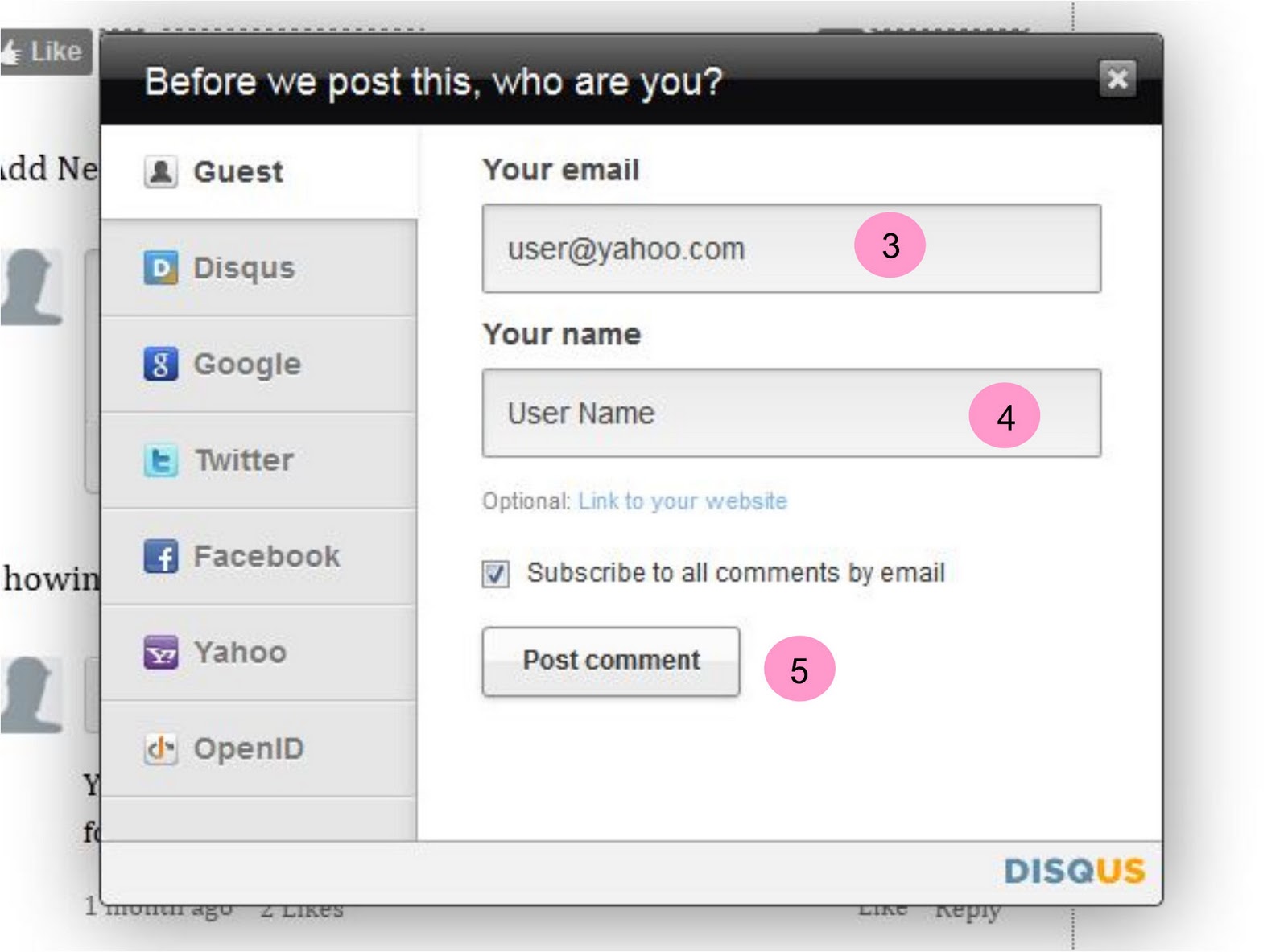 Step 3-5: Once you click Post as you have different options to choose from.You can post Anonymously by providing a name, or if you also have a blog you can add a link to your blog or website or chose from one of the many social networks like Facebook.