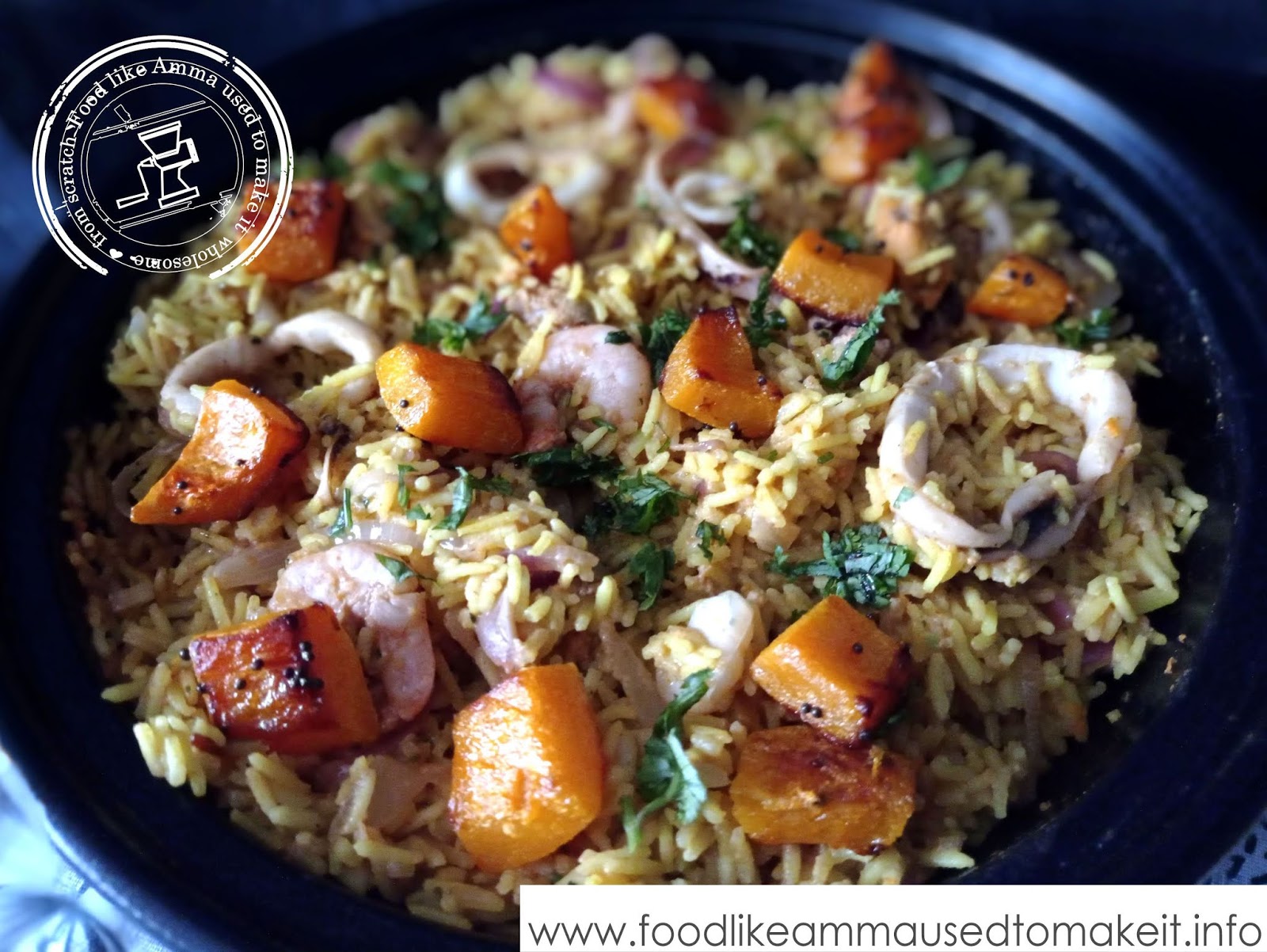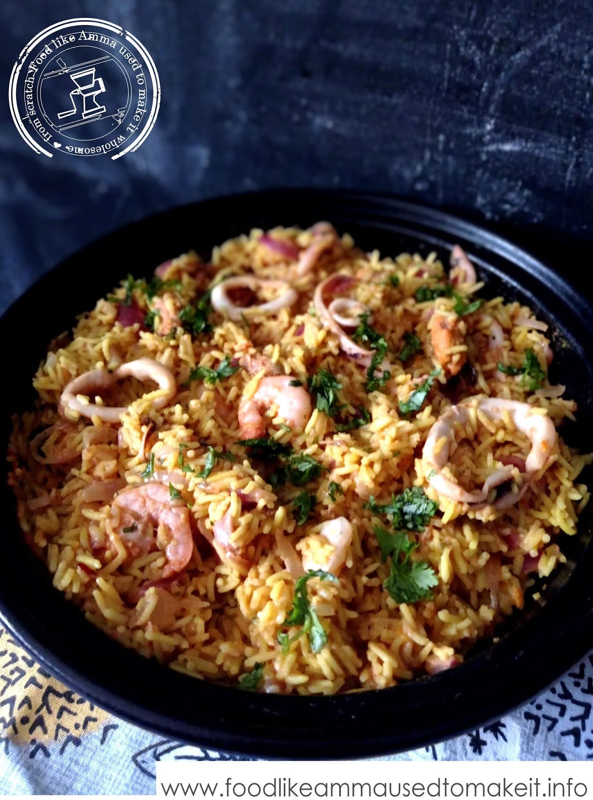 To cook the seafood, Fry chopped onions in ghee then add the seafood. Simmer for 5 minutes before adding rice.