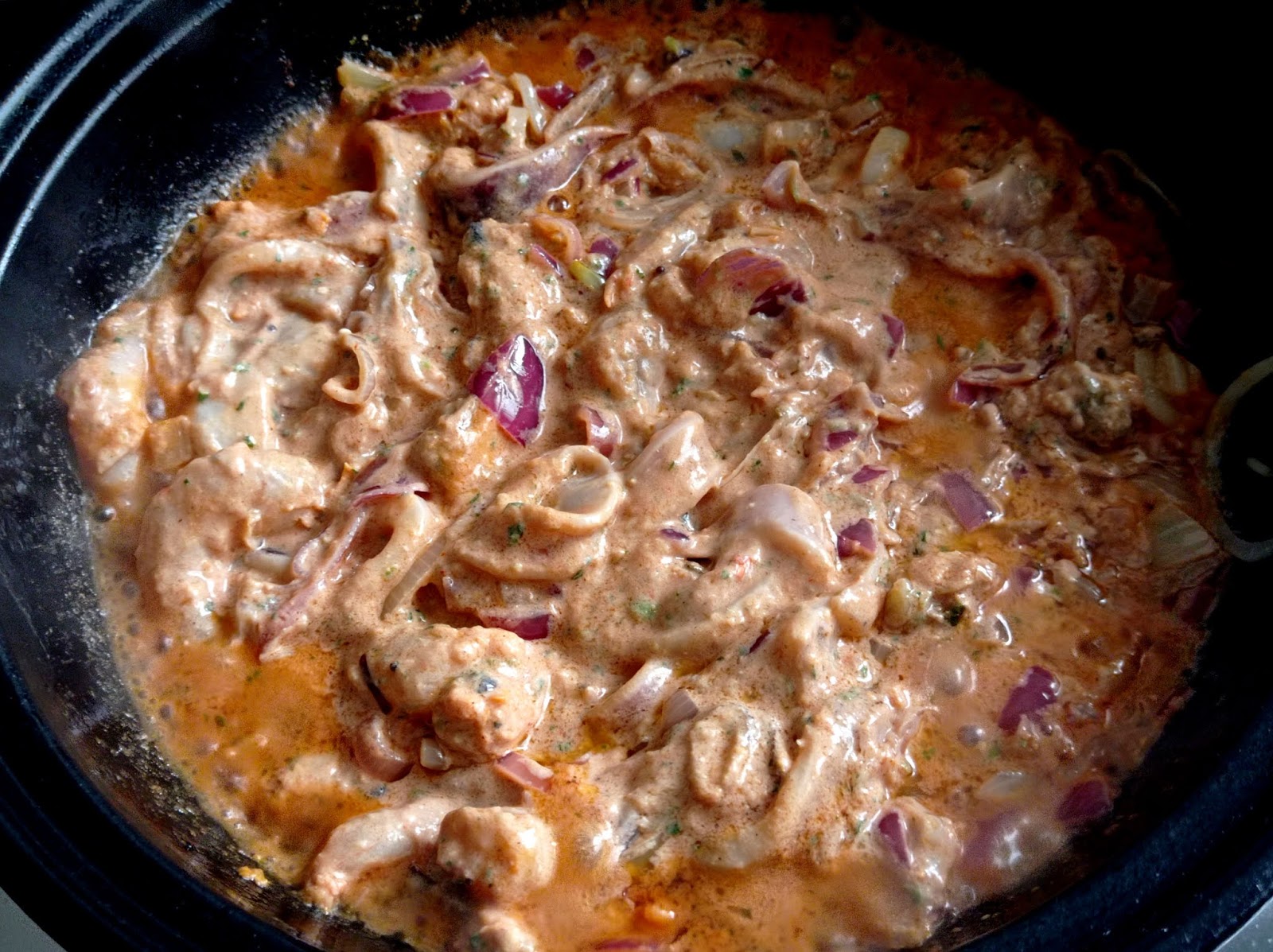 I marinate the seafood in green paste, made from chilli, ginger garlic, cumin, coriander and mint,add tomato paste and yogurt and top with fried onions. Place in the fridge for at least 30 minutes.