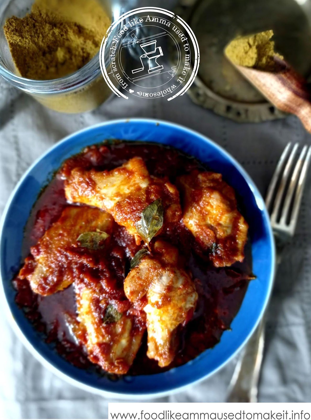 Amma‘s chicken curry made with birth masala was known as Marin Salo (Marinde Saloo). Sometimes braised dry or as a spicy soup like texture to help alleviate common cold symptoms. Chicken necks, feet or wings were often braised dry while odd pieces or a combination of different chicken pieces were made with more gravy using onion and tomatoes. Birth masala itself contains cumin, coriander seeds and carom seeds as key ingredients therefore it is not necessary to add garam masala when making this type of chicken curry. Amma’s version simply included birth masala and chilli powder, Durban masala or chicken curry masala. The combination of spices makes for a fragrant yet fiery chicken curry, perfect to beat the winter blues.
