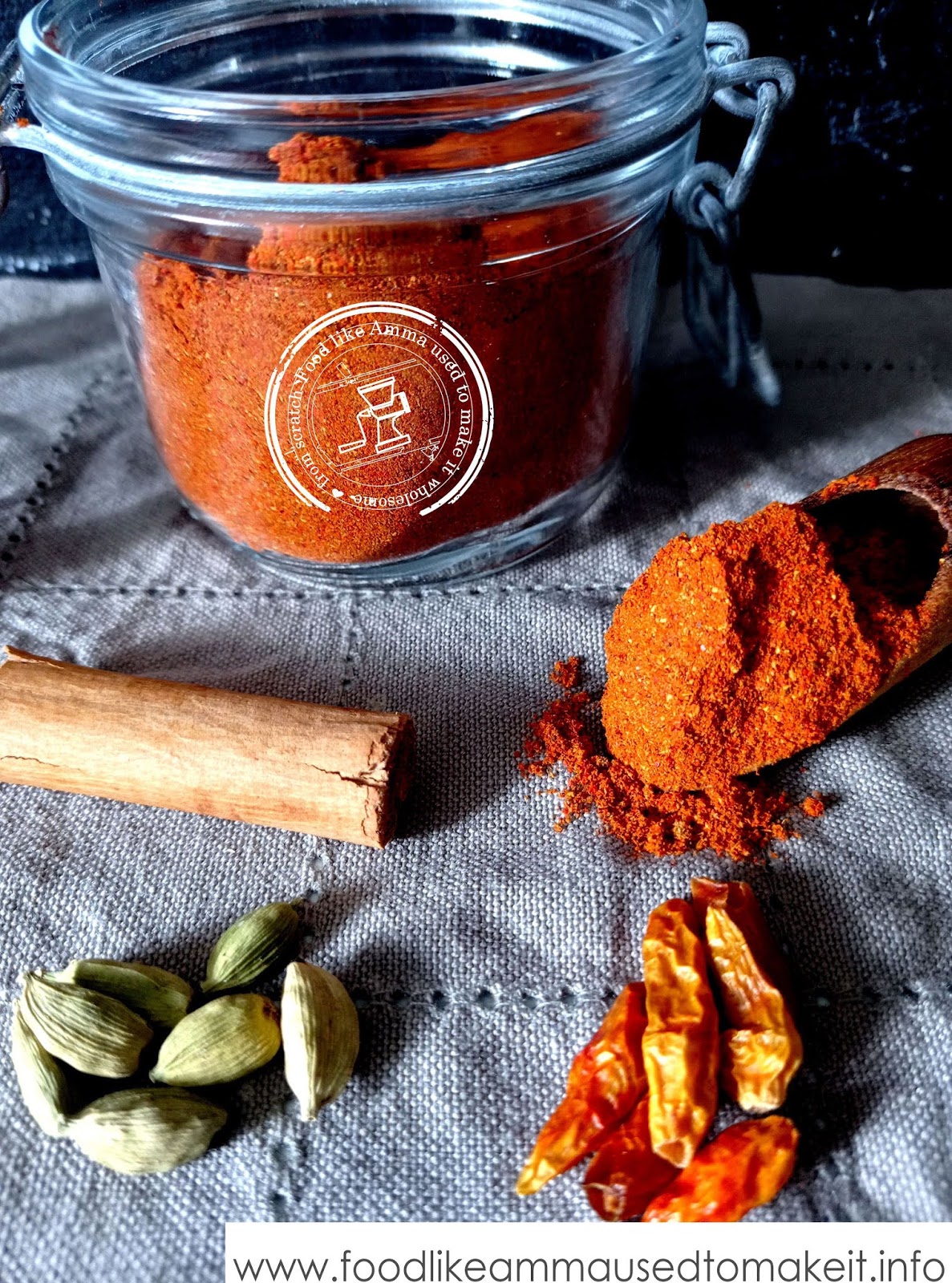 Durban Masala is a blend of spices that make up the charismatic aroma and fiery red colour of Durban Curry. This spice blend is a paradox of sweet spices like cinnamon, cardamon and fennel, combined with bitter cumin and fiery chilli and cayenne pepper and rounded off with coriander. Family recipes for this masala may vary. We grew up with mostly shop bought masala, particularly Pako and Osman’s Spices being Amma’s two favored range of Masala. On the rare occasion that she was out of masala, she ground dried chillies with a mortar and pestle to make homemade chilli powder and combined it with jeera and dhania powder or birth masala. It was my granny who loved drying hoards of chillies or dried onions on the lawn to make her own blend of spices, often knelt over the grinding stone. Having lived abroad for nearly two decades now, I have often adapted recipes to suit ingredients. I have even blasphemously resorted to making chicken liver curry with fresh chillies and yellow curry powder. It’s about time I made my own masala! This recipe has come about through trial and error over a few months now and I am finally satisfied with the results, I hope you will enjoy this too!
