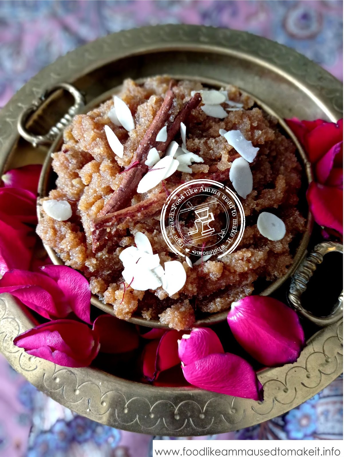 The raisin version in Jack Santa Maria’s Indian Sweet Cookery contains raisins and has a fiery note to it in the use of cloves. It is also fragrant from the use of sweet spices cardamon and cinnamon and adds rose water. It is garnished with almonds and pistachios.